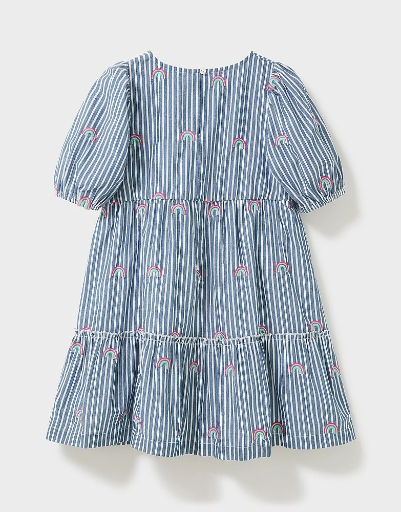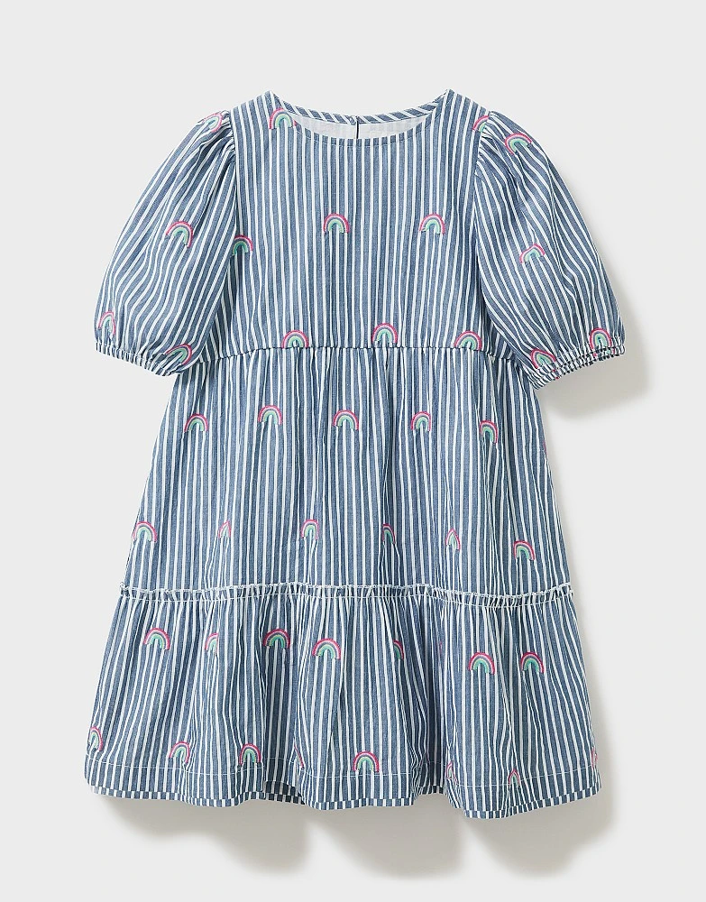 Tiered to perfection, this dress has been designed to be extra swishable. We love the colourful rainbows paired with all-over stripe pattern, and the puff sleeves are oh-so-cute. Pair with tights and ballet pumps for dressier playdates.