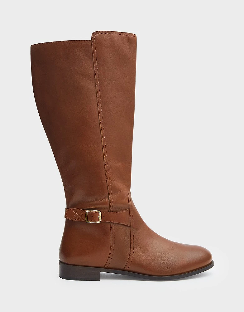 Our riding boots in tan. We’ve updated our long boots to feature elasticated detail to give a bit of stretch, making them super comfy to wear, and we’ve added a tassel zip pull. The tan hue will work with a myriad of outfits. Effortless.