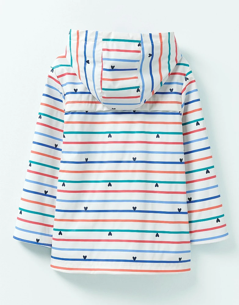 Rainy days call for our rubberised mac. Printed with a smile-inducing heart motif and finished with a cosy cotton lining, this showerproof coat is just the thing for an afternoon spent splashing in puddles. Layer over our sequin knit and they’re ready for anything.
