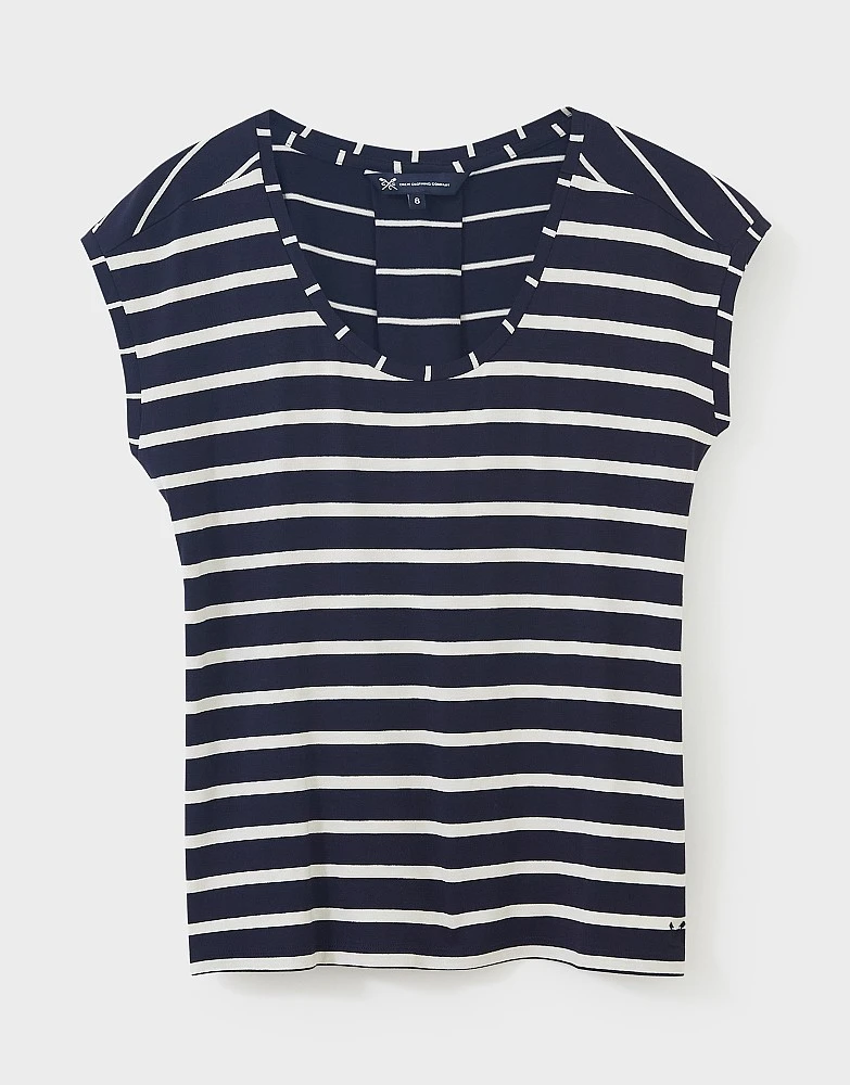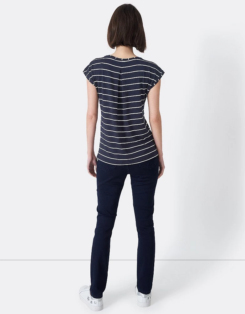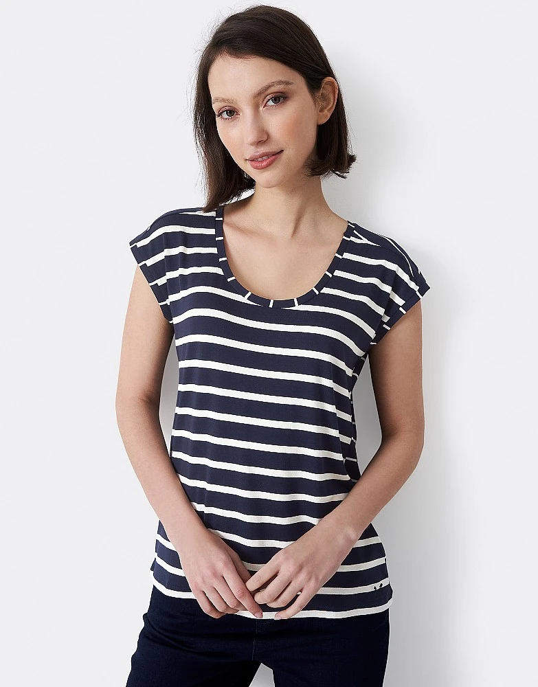 Refresh your t-shirt collection with our Ruby top in navy and white. Double turned-up cuffs give this a relaxed look while the different stripe setting on the back adds interest. Itβs crafted from sustainably sourced viscose, generating up to 50% lower water impact and CO2 emissions than traditional viscose. A smart choice.