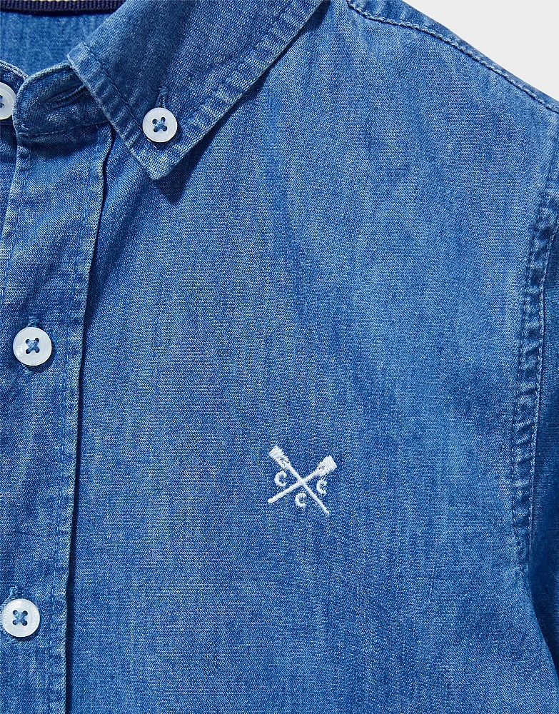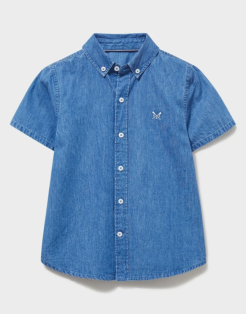 A short sleeve chambray denim shirt. This is cut from indigo dyed denim that’s been washed to give it a lived in look. Wear buttoned up or undone layered over a tee for a relaxed look – you’ll be the king of cool.