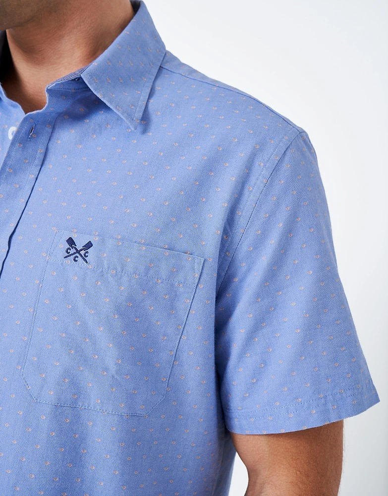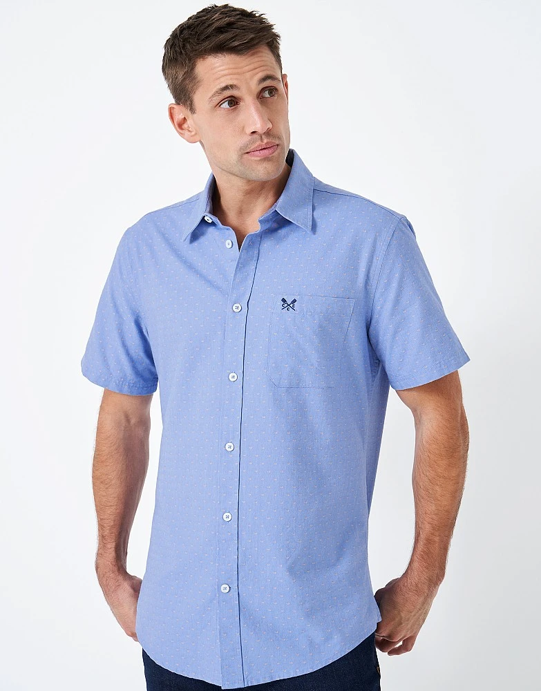 Refresh your shirt rack with our short sleeved dobby shirt in blue. We’ve designed this easy-to-wear shirt with a chest pocket and our signature embroidery. There’s so many ways to wear it, but we love it paired with chinos and our boat shoes.