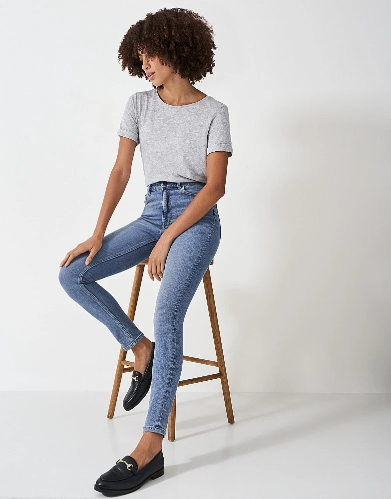 Light wash skinny fit jeans. Made to retain their shape, you’ll love this style. Team with floaty tops or crisp shirts… they’ll work with everything.