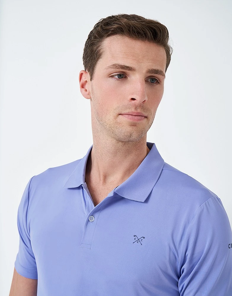 Introducing our smart golf polo in blue. This features all the much-loved signatures of our classic polos, with extra touches added especially for the fairway. Cut from a copper nylon mix, it incorporates anti microbial properties preventing any unwanted odours. Active-stretch allows the shirt to adapt to the movement of your body for ultimate comfort and the addition of moisture wicking technology provides quick-drying and cooling qualities. Our crossed clubs printed on the chest are the perfect finishing touch.