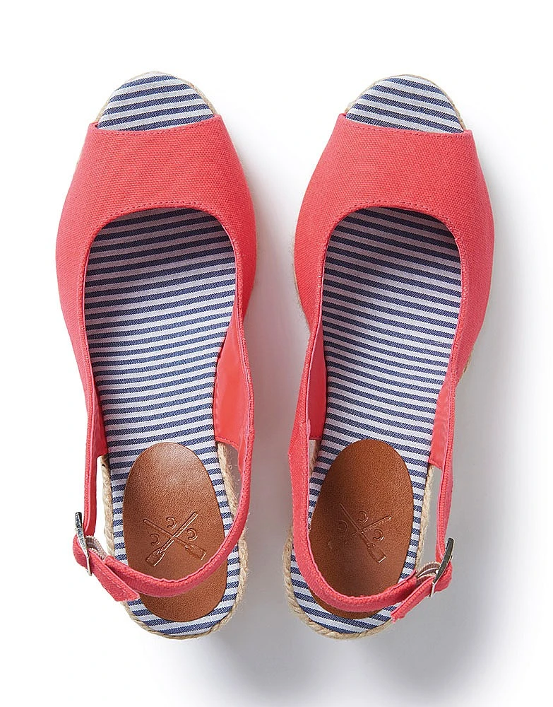 A stylish wedge espadrille. With a peep toe and small side buckle. A ‘wear anywhere’ summer classic.