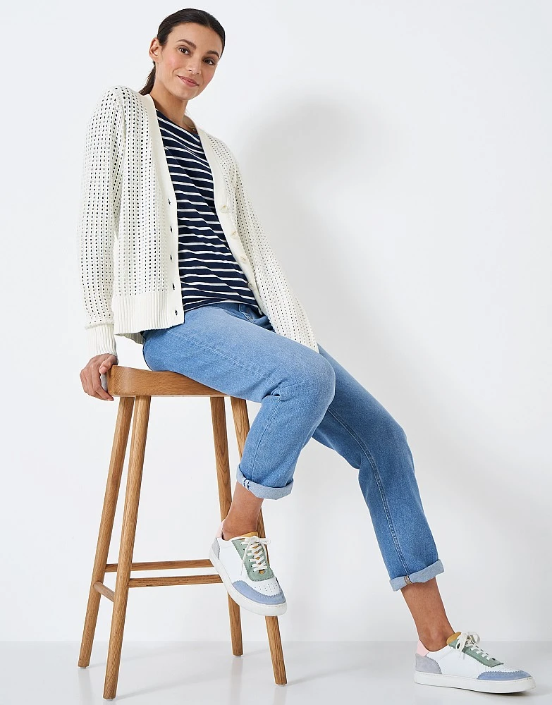 Say hello to our Sophie cardigan in ivory. Update this season’s layer game with this knockout knit that features mock horn buttons and an all-over stitched pattern. We like it paired with jeans or draped over a dress. Effortless.