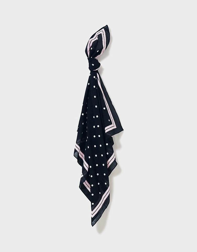 A navy neckerchief scarf in a polka dot print. Simply pair with a simple tee for instant style points.