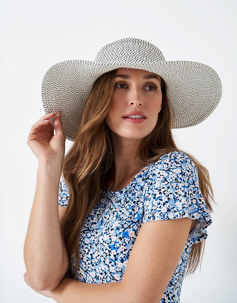 Top off your look with our stylish sunhat in white and navy. Breathable with a wide brim, this staple accessory is perfect for sunny days. Pair with linen – this one deserves a spot in your beach bag.