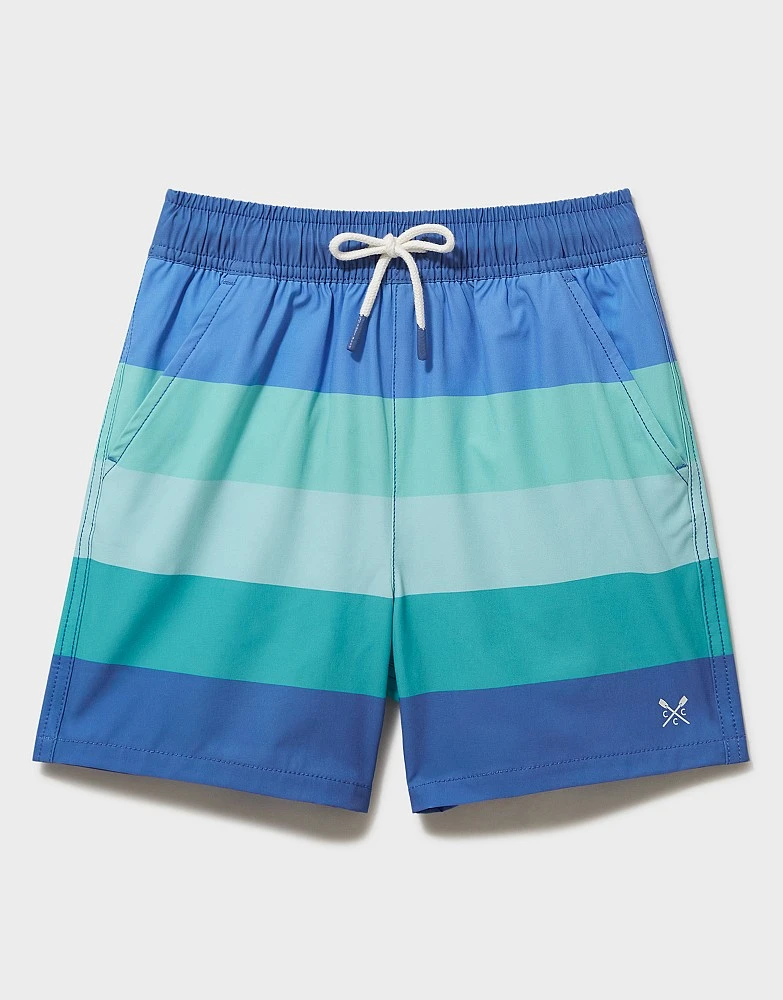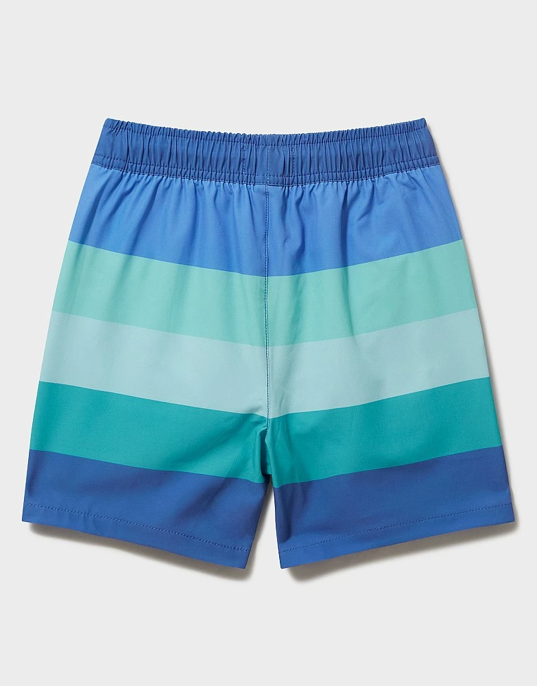 Blue striped swim shorts. Dive into summer with these colourful shorts made for days by the sea. They’re practical, comfortable and will keep their shape swim after swim. These are perfect for relaxing by the poolside and rock pool explorations alike.