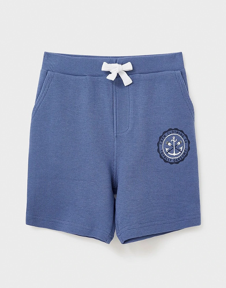 A blue pair of shorts with white detailing. These are made from a textured waffle fabric, have a drawstring waistband and feature a ‘totally oarsome’ Crew motif on the front. Throw on a white tee or hoodie and you’re good to go, wherever the seas may take you!