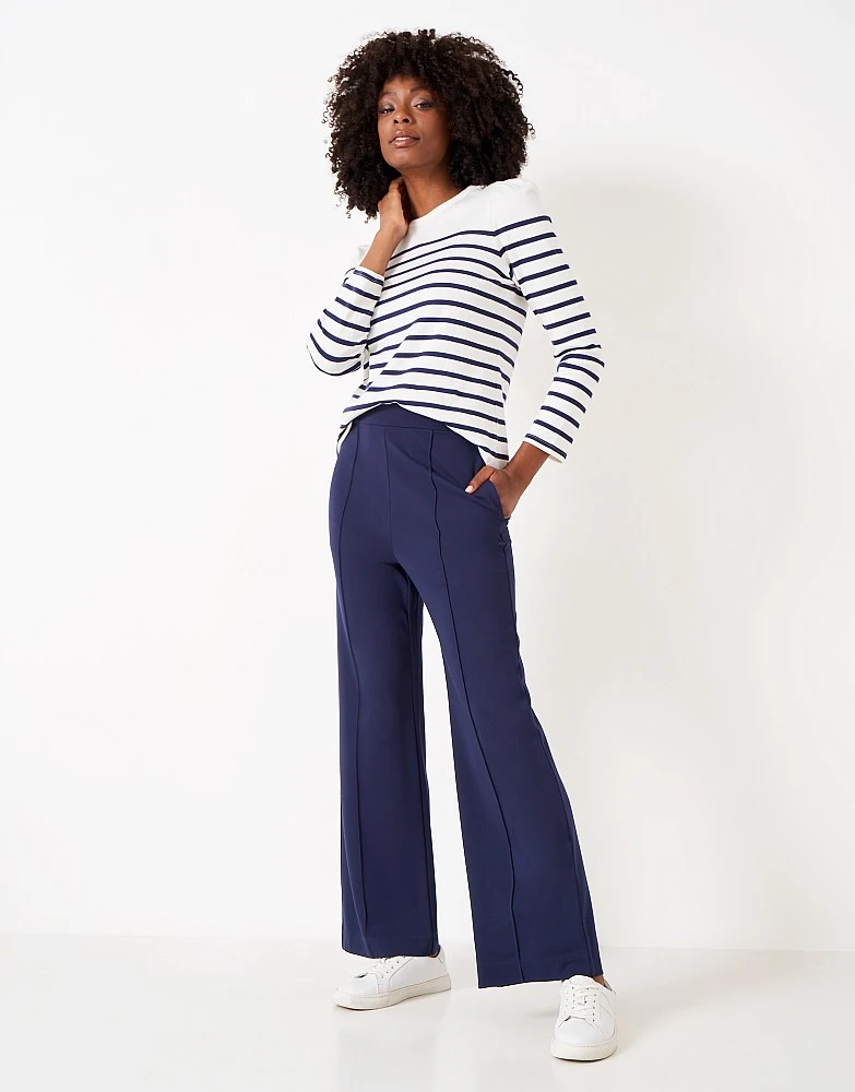 The brand new Westbourne trouser in navy. With added stretch, a drawstring waist and a slightly tapered design, these are as comfortable as they are stylish. We love them with a Breton tucked in or worn with a knit. As smart as you need them to be.